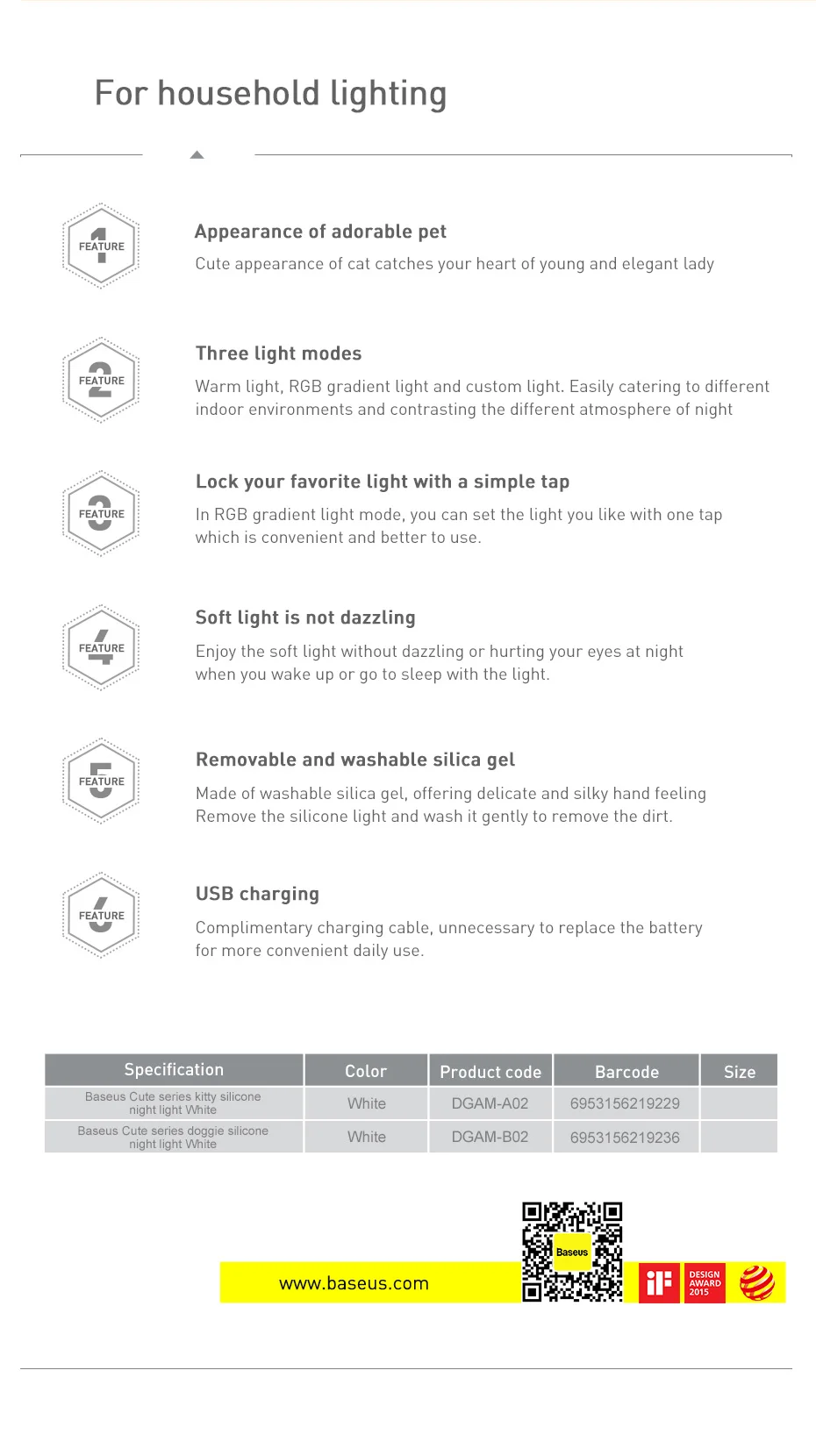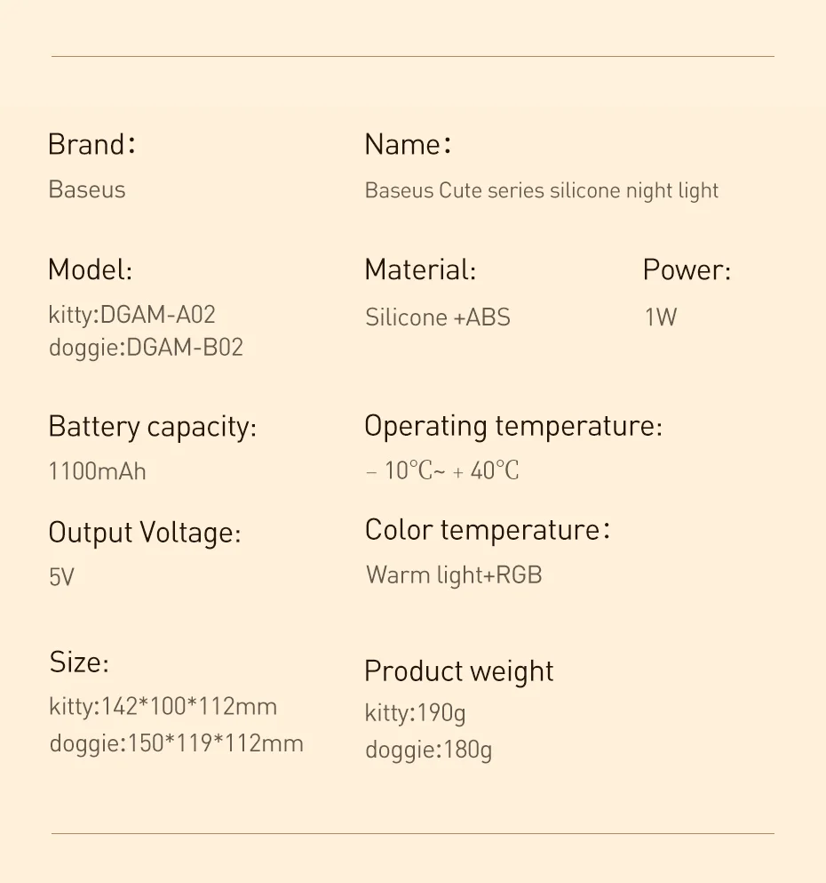 | Name | Baseus Cute Series Silicone night light |