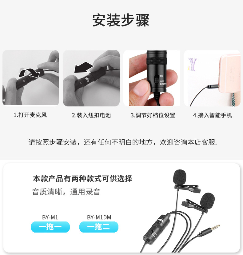 | color | Apple transfer wire, boya-m1 pro, boya-m1 single hoe, boya-m1dm double hoe, boya-m2 apple connector single hoe, boya-m2d apple connector double hoe, boya-m3 type-c单唛头, boya-m3 type-c双唛头, Huawei transfer wire |